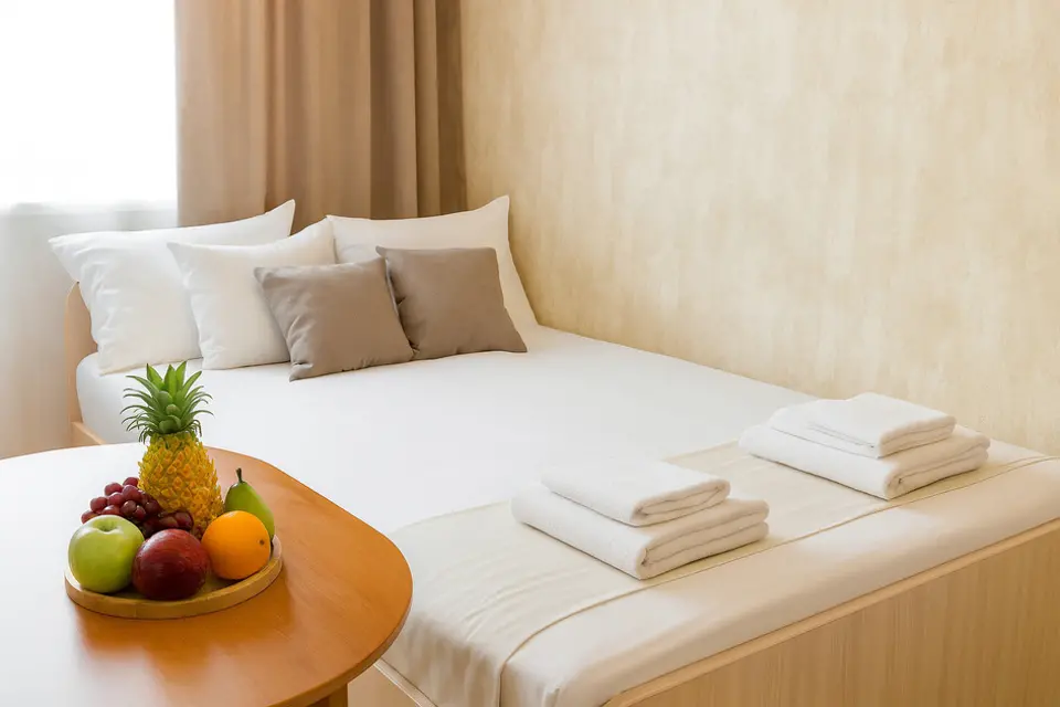 - Идеально чистое постельное бельё и полотенца — для вашего удобства и гигиены