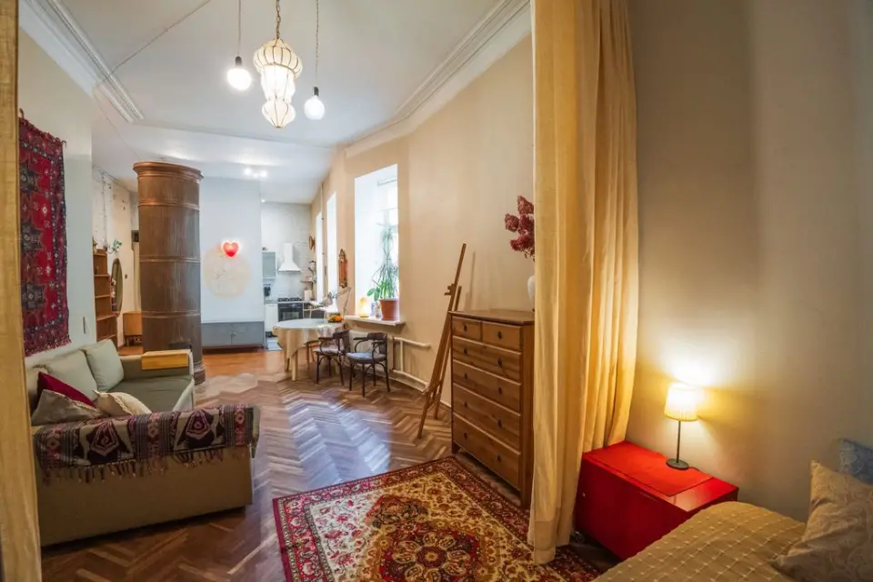 Квартира оформлена с заботой и вниманием к деталям — авторский дизайн, индивидуально подобранные элементы декора. Здесь есть всё для комфортного отдыха: удобная мебель, качественное постельное бельё, полотенца, бытовая техника и посуда.