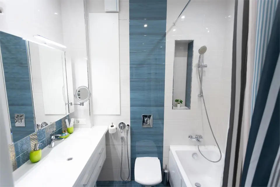 - Опрятная ванная комната с блестящими кранами и мягкими полотенцами, гигиеническими и косметическими наборами. Дополнительно присутствуют фен, утюг, сушилка.