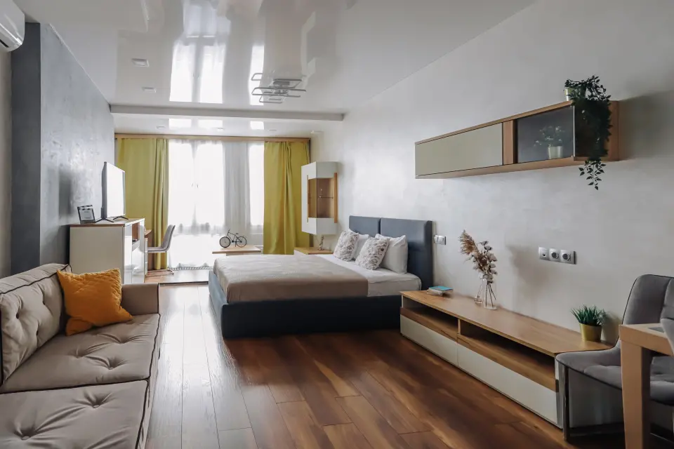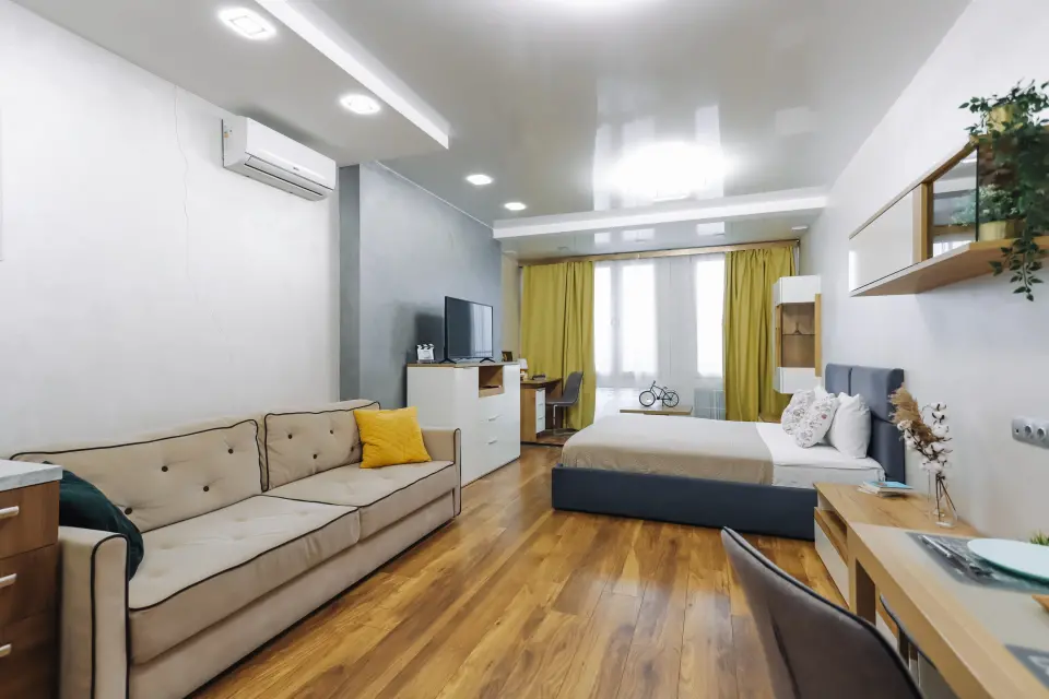 - Просторная кровать с удобным матрасом, постельным бельем из страйп-сатина, где вы почувствуете себя будто в уютном гнездышке. Скоростной Wi-Fi и современное SMART TV.