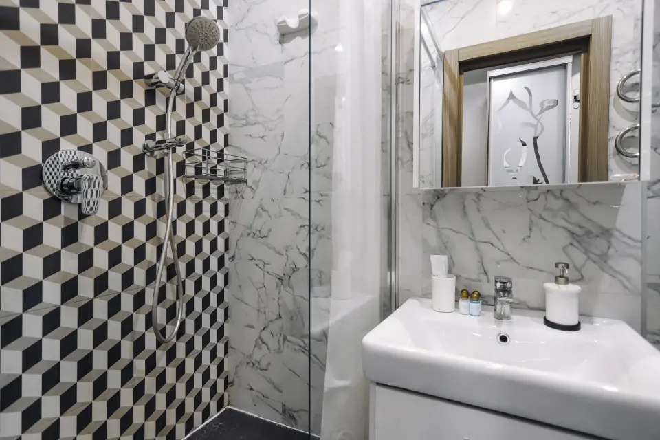 - Опрятная ванная комната с блестящими кранами и мягкими полотенцами, гигиеническими и косметическими наборами. Дополнительно присутствуют фен, утюг, сушилка.