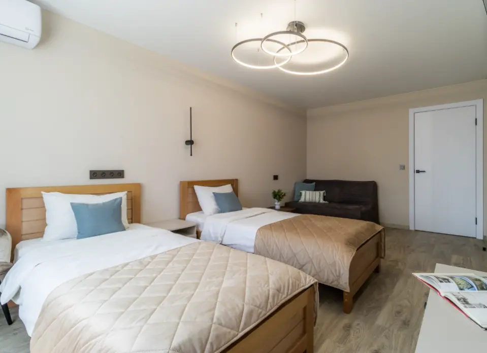 2 ОДНОСПАЛЬНЫЕ КРОВАТИ + РАСКЛАДНОЙ ДИВАН + КРЕСЛО-КРОВАТЬ ✨ ДО 4 ГОСТЕЙ ✔️Уютная и светлая квартира у озера с лоджией. Расположена в тихом районе с хорошо развитой инфраструктурой. В пешей доступности магазины, кафе, аптеки, обустроенная прогулочная пешеходная зона у озера. ✔️Идеально подходит как для небольших поездок, так и для длительных командировок. Почему этот вариант от компании "Стрелка - гостевые квартиры" лучший для Вас⭐: ✅ Самостоятельное заселение/выезд в удобное для Вас время (установлен электронный замок); ✅ Кухня с плитой, холодильником, чайником и микроволновкой; ✅ Кондиционер; ✅ Посуда и кухонные принадлежности для приготовления и приема пищи; ✅ 2 телевизора Smart, Wi-Fi; ✅ Лоджия; ✅ Чистое и отглаженное постельное белье и полотенца из собственной прачечной для каждого гостя; ✅ Фен, мыло, шампунь, гель для душа; ✅ Стиральная машина, а также все для стирки и глажки белья; ✅Бесплатная парковка во дворе. Платная парковка в пешей доступности; ✅ Хорошая транспортная доступность в любую часть города до любого предприятия и к достопримечательностям. Отличный вариант для комфортного пребывания в городе! ✅ У нас высокие стандарты уборки! Гарантируем чистоту и порядок. При длительном проживании промежуточные уборки и замена постельного белья и полотенец. ★Предоставляем полный пакет отчетных документов. ★Работаем с юридическими лицами и организациями. ★Оплата любым удобным способом. ПРАВИЛА ПРОЖИВАНИЯ: ✨При регистрации необходимо предоставить паспорт и подписать электронный договор. ✨Время заезда после 14:00, выезда до 11:00. Ранний заезд и поздний выезд возможен по предварительному согласованию ✨Перед заездом в квартиру взимается залог, возвращается в день выезда по результатам проверки квартиры и при условии соблюдения правил проживания ⛔Курение, в том числе электронных сигарет и кальяна, в помещении запрещено! ⛔Только для тихого проживания, мероприятия, вечеринки и громкие посиделки запрещены! ⭐Подapитe ceбe комфортный oтдыx со вcеми удобcтвaми в Апaртамeнтаx "Стрелка"!⭐ ▸50 метров продуктовый магазин "Магнит", продуктовые ряды с овощами, фруктами, фермерским мясом и сырами. ▸200 метров продуктовые магазины "Перекресток", "ВкусВилл", "Пятерочка"; ▸2 км до ТРЦ "Седьмое небо" (магазины, большой супермаркет "Ашан", кафе, кинотеатр, фудкорт) (20 мин пешком или 3 остановки на маршрутном такси) ▸2,5 км до Футбольного Стадиона, Стрелки (слияния Оки и Волги), Пакгаузов и Собора Александра Невского; ▸ 2 остановки на метро до исторического центра города или 20 минут на авто; ▸7 км до Сормовского парка и Зоопарка Лимпопо (20 минут на авто); ▸ 10 км до ТЦ «Океанис», Аквапарка и парка Швейцария (20 мин на авто); ▸ 10 мин на авто от ЖД вокзала; ✈️ От аэропорта Стригино – 40 минут.