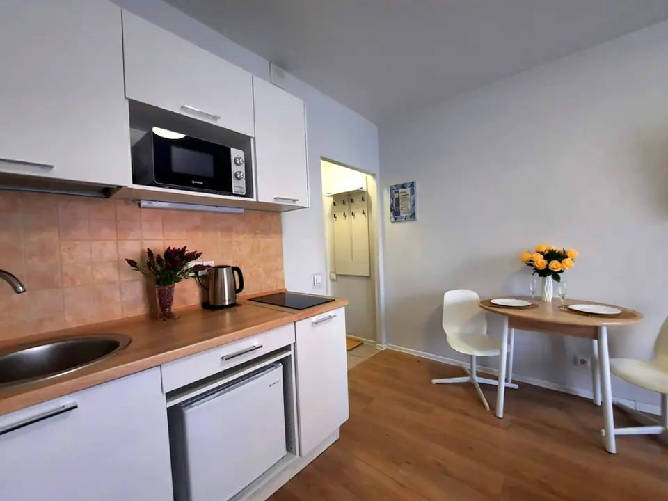 • Полностью оборудованная кухня (варочная панель, микроволновая печь, холодильник)