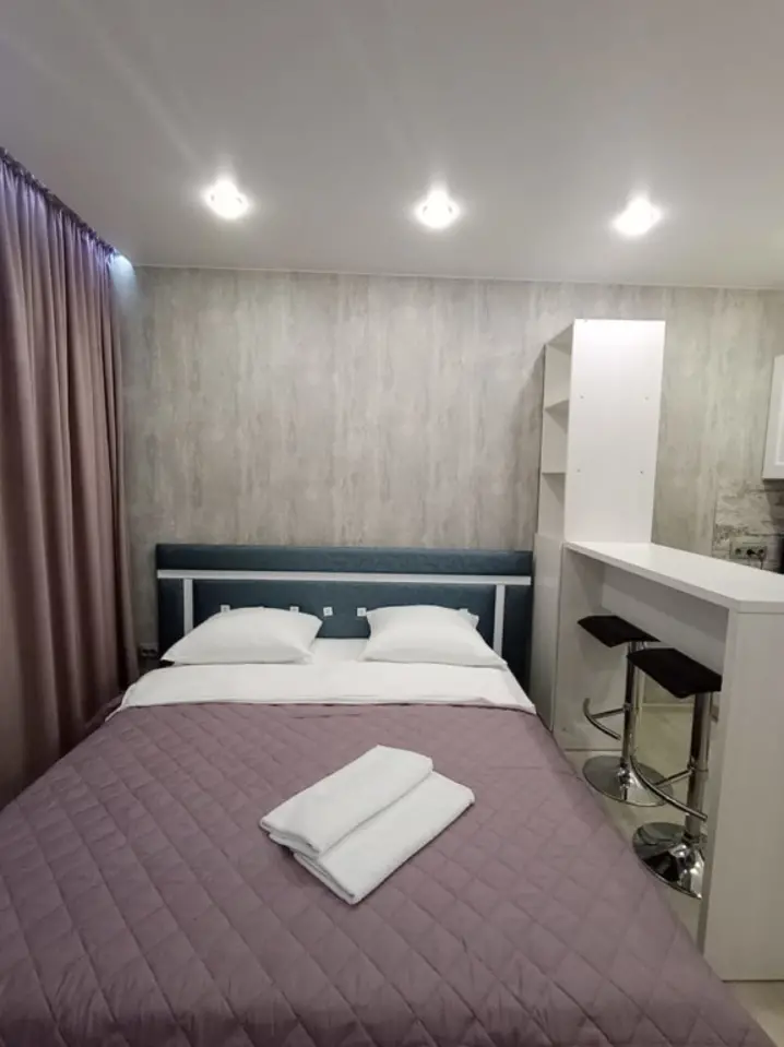 Уютная квартира-студия со всем необходимым для комфортного проживания. В квартире имеется: посуда, дозатор с жидким мылом, шампунь 2 шт. , туалетная бумага, средство для мытья посуды, губка для мытья посуды, ветошь для уборки, большая двуспальная кровать, двухспальный диван, шкаф-купе, стеллаж, письменный стол, два барных стула, кухонный гарнитур, зеркало, сушилка для белья, гладильная доска, утюг, микроволновая печь, холодильник, фен, жк телевизор, плита, стиральная машина.