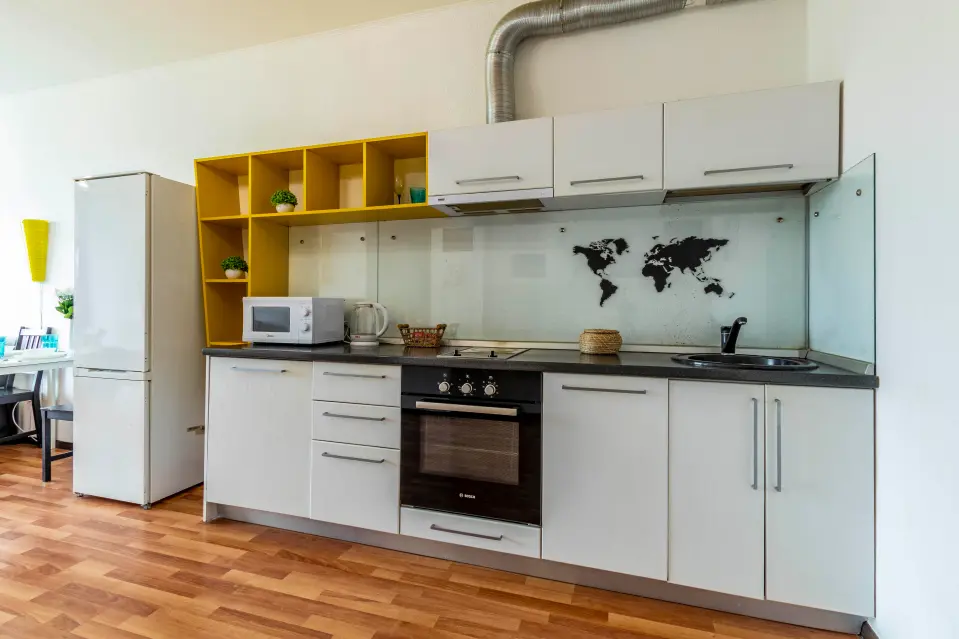 * Полноценная кухня (варочная панель, микроволновка, чайник)