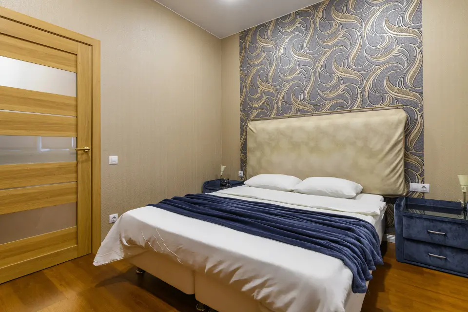 - Двуспальная кровать 160х200 с ортопедическим матрасом, удобными подушками, пледом, одеялом, свежим постельным бельем