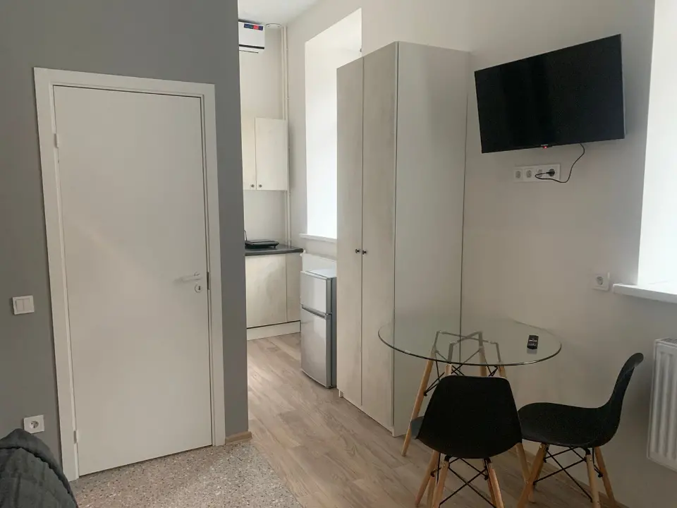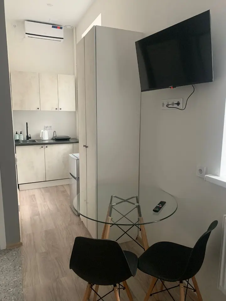 Вся необходимая мебель и техника: кровать 140*200, совмещенный санузел с душем, мини-кухня, кондиционер.