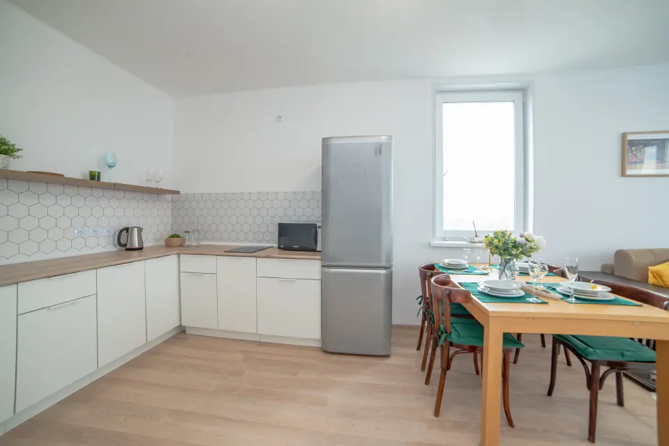 * Полноценная кухня (плита, микроволновка, чайник)