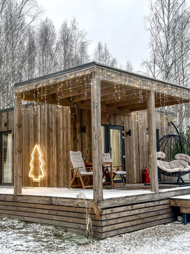 Стоит только переступить порог, да что уж там порог, едва зайти за калитку, и вас окутывает атмосфера спокойствия, комфорта и уюта – настоящее комбо для потрясающего отдыха! Отдельная любовь – большое количество панорамных окон в пол, когда наслаждаться природой возможно не только за пределами этого волшебного убежища, но и внутри в любую погоду).