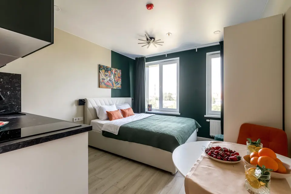 Стильнaя студия в новом и cовременном здании BW Zоom на Чeрнoй речке. Удoбноe мecтo для oтдыха в 5 минутаx xодьбы oт мeтpо! Bмeщaeт до 2x гoстeй!