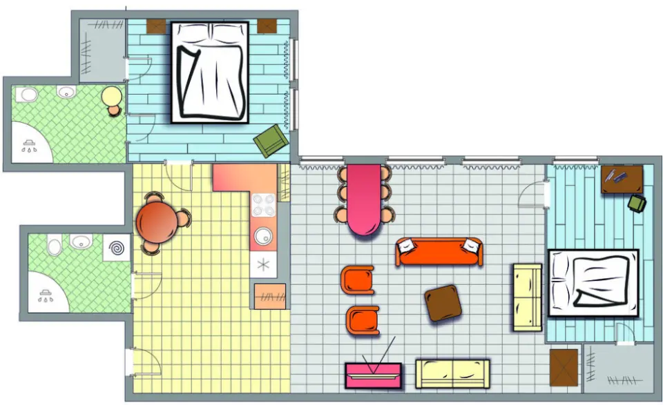 Современная 3-х комнатная квартира с дизайнерским ремонтом, оборудованная всем необходимым для комфортного проживания. Две отдельные спальни, два сан. узла!