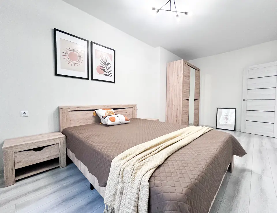 - Большая двухспальная кровать 160/220 с качественным постельным бельем и ортопедическим матрасом