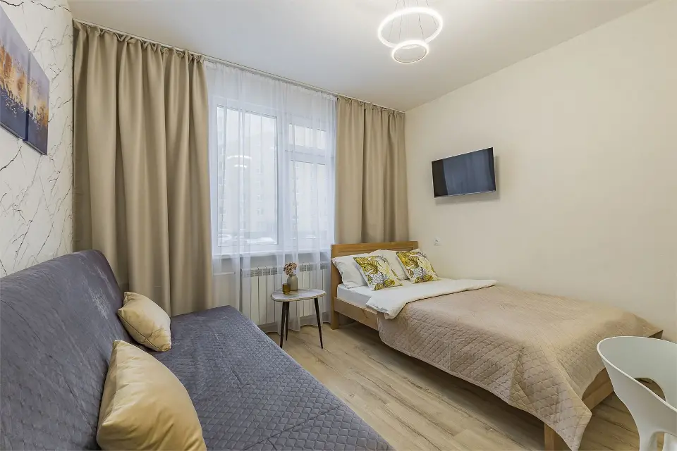 ПОЛУТОРАСПАЛЬНАЯ КРОВАТЬ + РАСКЛАДНОЙ ДИВАН✨ ДО 3 ГОСТЕЙ ✔️ Комфортная студия в современном ЖК "Бурнаковский" недалеко от озера. Расположена в районе с хорошо развитой инфраструктурой. В пешей доступности магазины, кафе, аптеки, продуктовый рынок, обустроенная прогулочная зона у озера. ✔️ Идеально подходит как для небольших поездок, так и для длительных командировок. Почему этот вариант от компании "Стрелка - гостевые квартиры" лучший для Вас⭐: ✅ Самостоятельное заселение/выезд в удобное для Вас время (установлен электронный замок); ✅ Мини-кухня с плитой, холодильником, чайником и микроволновкой; ✅ Посуда и кухонные принадлежности для приготовления и приема пищи; ✅ Телевизор с плоским экраном, Wi-Fi; ✅ Чистое и отглаженное постельное белье и полотенца из собственной прачечной для каждого гостя; ✅ Фен, мыло, шампунь, гель для душа; ✅ Стиральная машина, а также все для стирки и глажки белья; ✅ Допускается проживание с домашними животными (по предварительному согласованию за дополнительную плату); ✅ Бесплатная парковка во дворе. Платная охраняемая парковка в пешей доступности; ✅ Хорошая транспортная доступность в любую часть города до любого предприятия и к достопримечательностям. Отличный вариант для комфортного пребывания в городе! ✅ У нас высокие стандарты уборки! Гарантируем чистоту и порядок. При длительном проживании промежуточные уборки и замена постельного белья и полотенец. ★Предоставляем полный пакет отчетных документов. ★Работаем с юридическими лицами и организациями. ★Оплата любым удобным способом. ПРАВИЛА ПРОЖИВАНИЯ: ✨При регистрации необходимо предоставить паспорт и подписать электронный договор. ✨Время заезда после 14:00, выезда до 11:00. Ранний заезд и поздний выезд возможен по предварительному согласованию ✨Перед заездом в квартиру взимается залог, возвращается в день выезда по результатам проверки квартиры и при условии соблюдения правил проживания ⛔Курение, в том числе электронных сигарет и кальяна, в помещении запрещено! ⛔Только для тихого проживания, мероприятия, вечеринки и громкие посиделки запрещены! ⭐Подapитe ceбe комфортный oтдыx со вcеми удобcтвaми в Апaртамeнтаx "Стрелка"!⭐ ▸ 200 метров до продуктового магазина "Ашан", Бурнаковского продуктового рынка, кафе "Сели-съели", пиццерии "ПиццаФабрика"; ▸ 700 метров до продуктового магазина "Перекресток"; ▸4 км (10 мин на авто) до ЖД вокзала, ТРЦ "Седьмое небо" (магазины, кафе, кинотеатр, фудкорт), Нижегородской ярмарки, Нижегородского цирка, Футбольного Стадиона, Стрелки (слияния Оки и Волги) и Собора Александра Невского; ▸7 км до исторического центра города (15 минут на авто); ▸6 км до Сормовского парка и Зоопарка Лимпопо (15 минут на авто); ▸ 10 км до ТЦ «Океанис», Аквапарка и парка Швейцария (20 мин на авто); ✈️ От аэропорта Стригино – 40 минут.