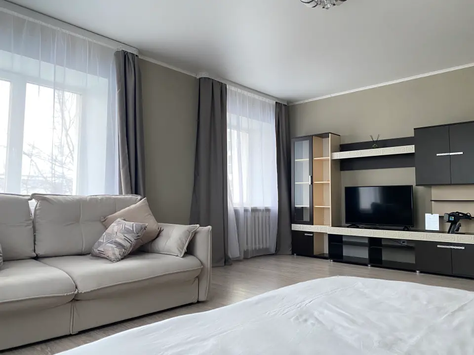 Каждая комната выполнена в мягких, нейтральных тонах, что создает уютную атмосферу и позволяет расслабиться после насыщенного дня. Большие окна обеспечивают отличное естественное освещение, а удобный диван идеально подходит для отдыха или чтения.