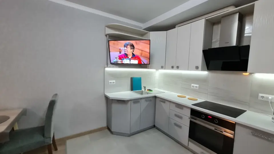 - Полностью оборудованная кухня (варочная панель, духовой шкаф, микроволновая печь, холодильник)