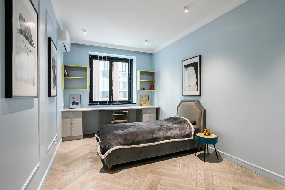 Ваш идеальный отдых в окружении искусства и тишины! Представьте: вы просыпаетесь в просторной спальне на «облачном» матрасе, завариваете кофе в турке и выходите на балкон. Перед вами — тишина и зелень закрытого двора, а внутри — атмосфера настоящей художественной галереи с десятками оригинальных портретов и дизайнерским интерьером в серо-голубых тонах.