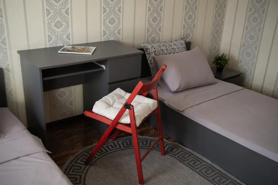 ▫️ вся необходимая мебель для проживания: две 1 сп кровати 90 см ( при необходимости можно объединить, крова 2х сп- 180 см) ; места для хранения вещей, рабочий стол и обеденная зона, шторы блэкаут, жалюзи