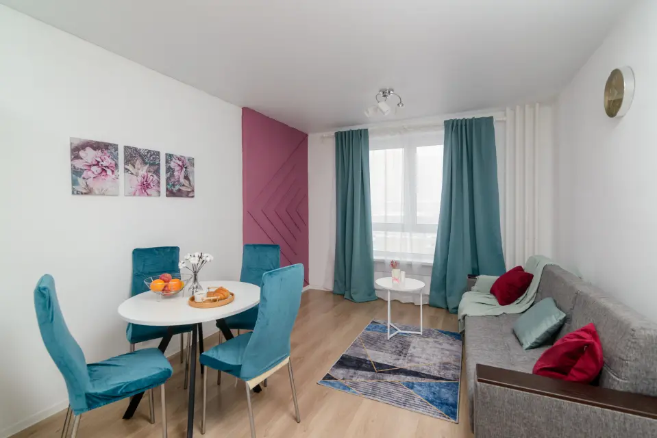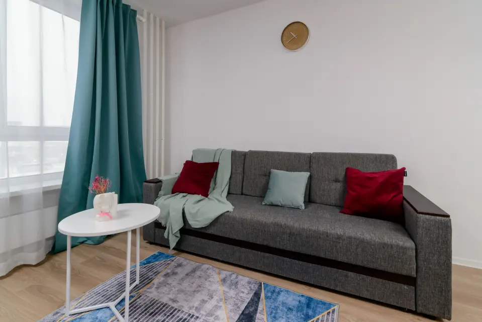 - Вместимость до 4 гостей (двуспальная кровать + раскладной диван)