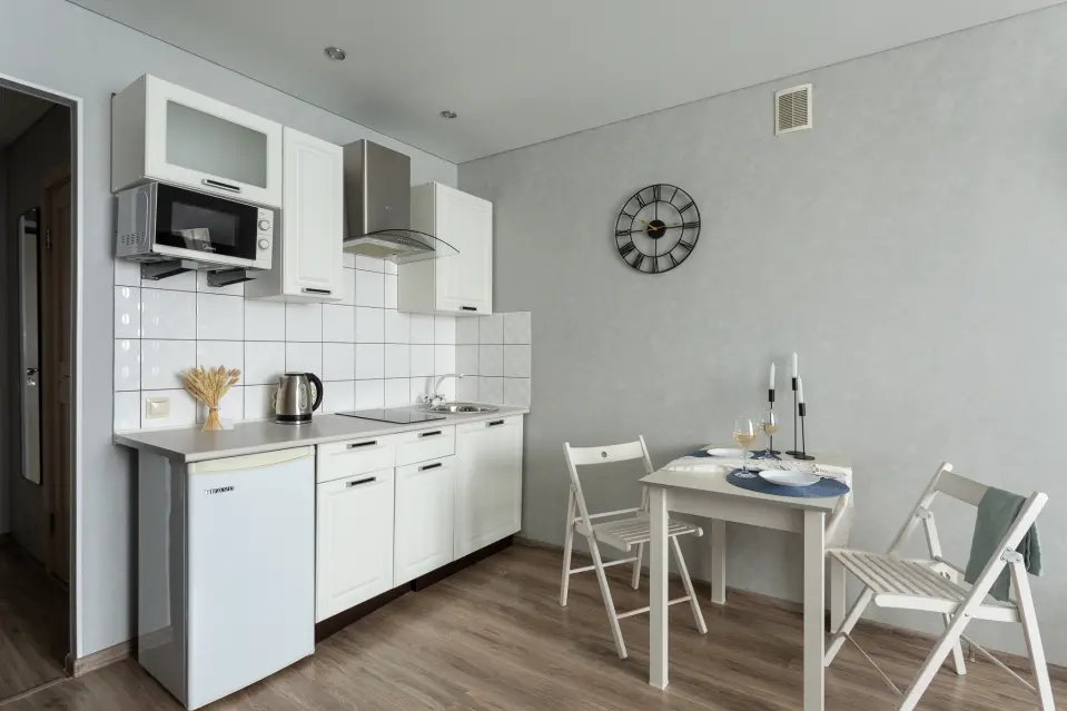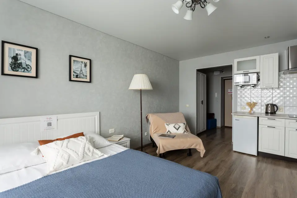Сомневаетесь, где приготовить или разогреть еду? Продуманная кухня с набором необходимой техники решает этот вопрос. Еще одно приятное преимущество — функциональная ванная комната с полноразмерной ванной, где вы сможете расслабиться после насыщенного дня. Наличие стиральной машины избавит вас от необходимости искать прачечные или сдавать вещи в специальные сервисы. Это решение проблемы с заботами о чистоте одежды.