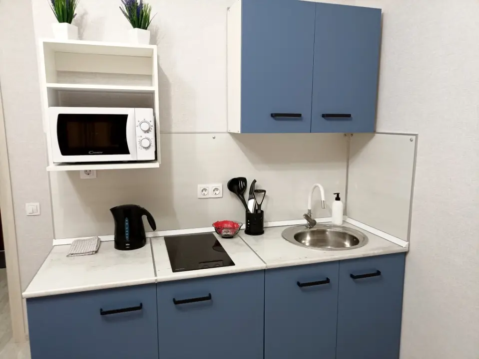 - Бытовая техника: стиральная машина, СВЧ, чайник, варочная панель 🔌