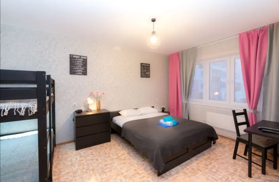 Квартира вмещает до пяти гостей. Стоимость указана за размещение до 3-х гостей. Стоимость проживания дополнительного гостя 500 рублей. Спальные места: двуспальная кровать + двухъярусная кровать + хорошая раскладушка. По необходимости предоставляем детскую кроватку-манеж для деток: hauck dream'n play Квартира domvistel спортивная 17 уютная, чистая, рядом спортивный центр заря, МНТК им. Фёдорова, в квартире не курят. В квартире есть все необходимое для комфортного проживания: высокоскоростной wifi интернет, телевидение, свежее постельное бельё, полотенца, фен, туалетные принадлежности, холодильник, стиральная машина, микроволновая печь, водонагреватель, эл. плита, эл. чайник, утюг, гладильная доска, зарядное устройство для любого телефона. Рядом с квартирой расположены: Мнтк микрохирургия глаза им федорова ул. Колхидская 10 (10 мин. пешком) Экспоцентр новосибирск expo centre ул. Станционная 104 (10 мин. на такси) Спортивный центр заря ул. Спортивная 2 (7 мин. пешком) Ипподром ул. Станционная 97 (10 мин. езды) Аквапарк (аквамир) 20 мин. езды Аэропорт толмачёво (15-20 мин. езды) Предоставляется отчётность для командировочных. Стандартное время заезда - с 14-00 ( если вам нужно заехать раньше, сообщите нам об этом), выезд до 12-00, дополнительно 1 час - 300 руб. Квартиры не сдаются для увеселительных мероприятий! Курение в квартире строго запрещено! !Проживание с животными запрещено!