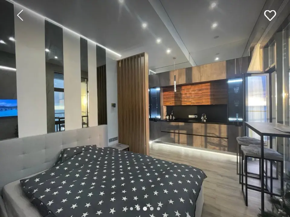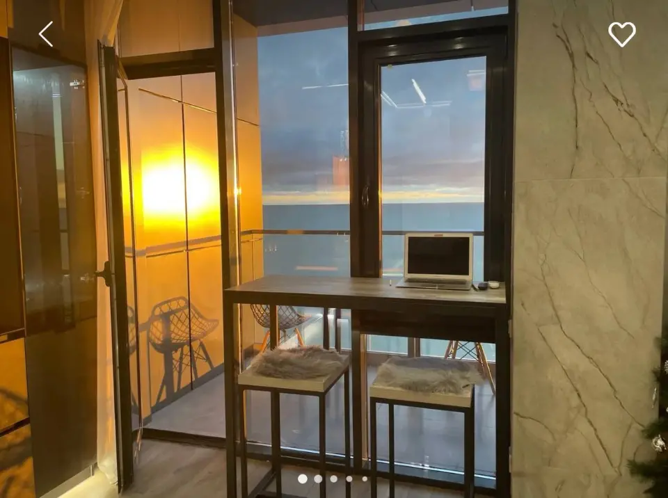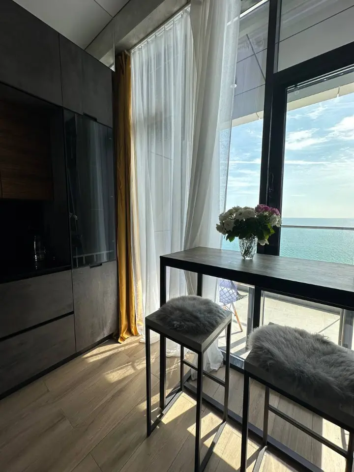 В номере выполнен дизайнерский ремонт в современном стиле лофт и есть всё, что необходимо для полноценного романтического отдыха! Посмотрите фото!Номер расположен на шестом этаже каскадного отеля. С лоджии открывается потрясающий вид на море, на закаты, картина незабываемая!