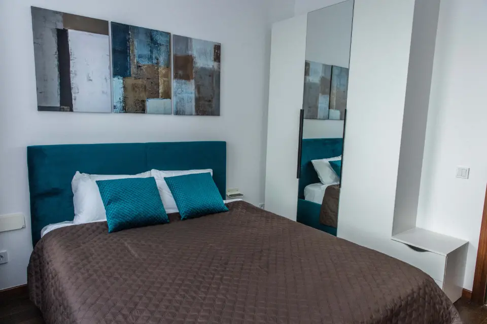 - Полноценная спальня с кроватью 160 на 200 с белым сатиновым бельем.