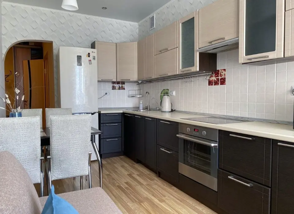 - Полностью оборудованная кухня (индукционная плита, духовка, холодильник, микроволновка, посуда)