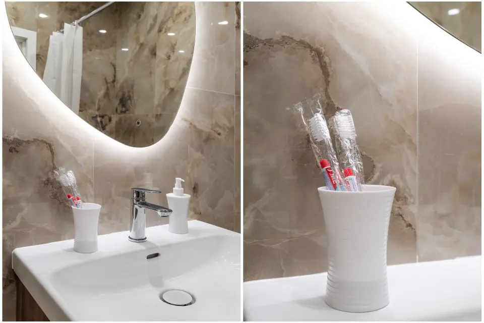 💙В ванной комнате вы найдете все необходимые принадлежности, включая шампунь, гель для душа, зубной набор и мягкие полотенца. Мы позаботились о том, чтобы у вас было всё, что нужно для комфортного проживания, включая стиральную машину и средство для стирки.