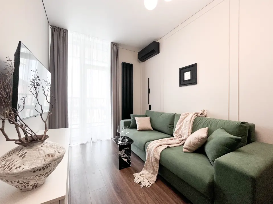 • Современный ЖК телевизор с кабельным ТВ и Wi-Fi для вашего удобства. 📺
