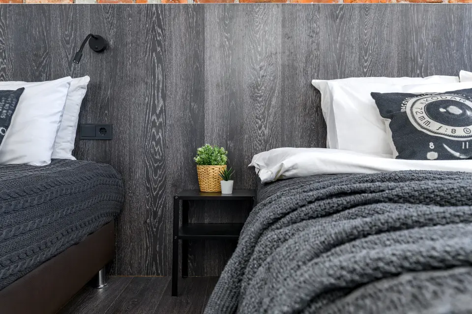 - двуспальная кровать 180х200 с ортопедическим матрасом, удобными подушками, пледом, одеялом, свежим постельным бельем.