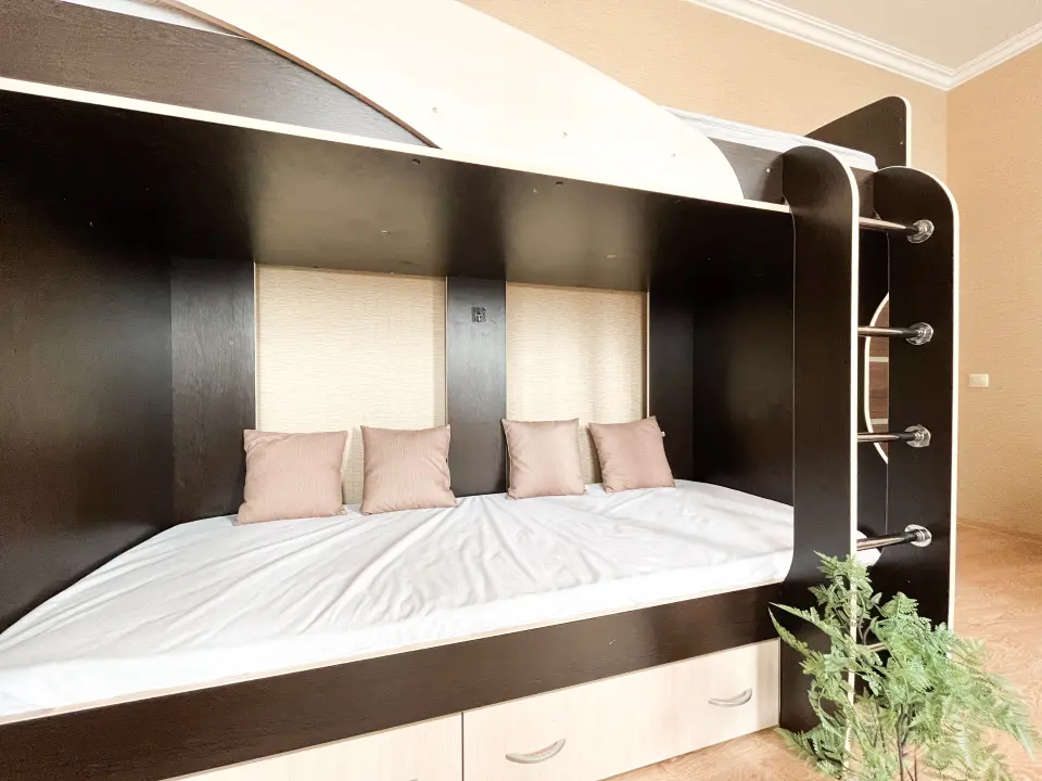 В гостиной 2 раскладных дивана и двухярусная кровать