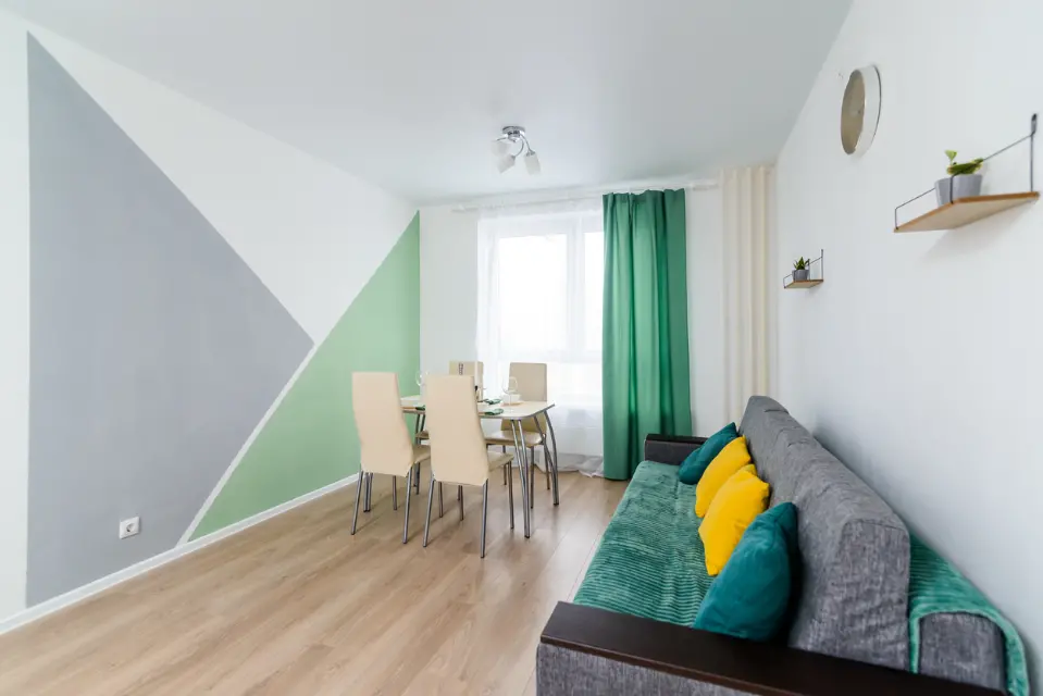- Вместимость до 4 гостей (двуспальная кровать + раскладной диван)